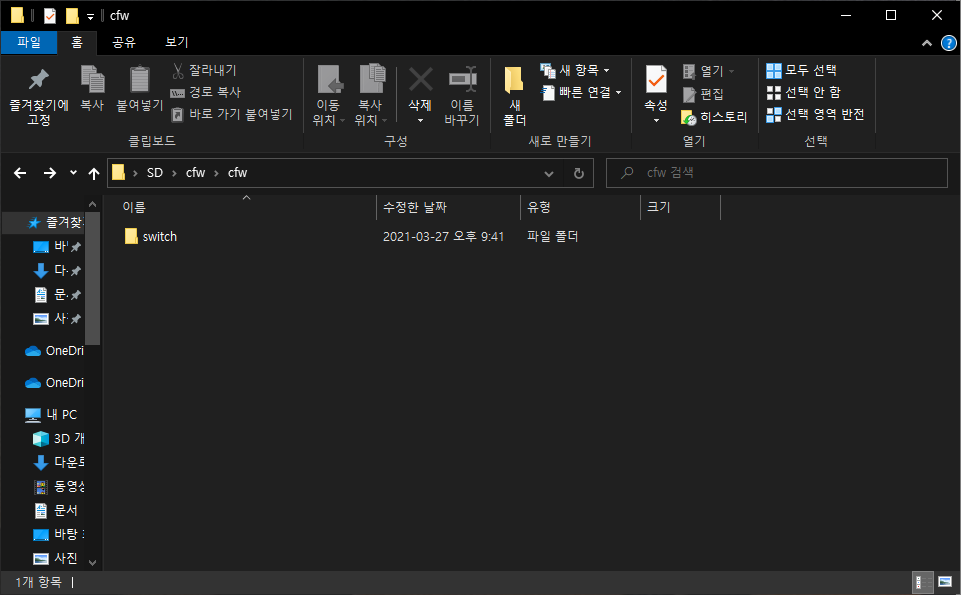 cfw.zip의 압축을 풀면 switch 폴더가 나옵니다.