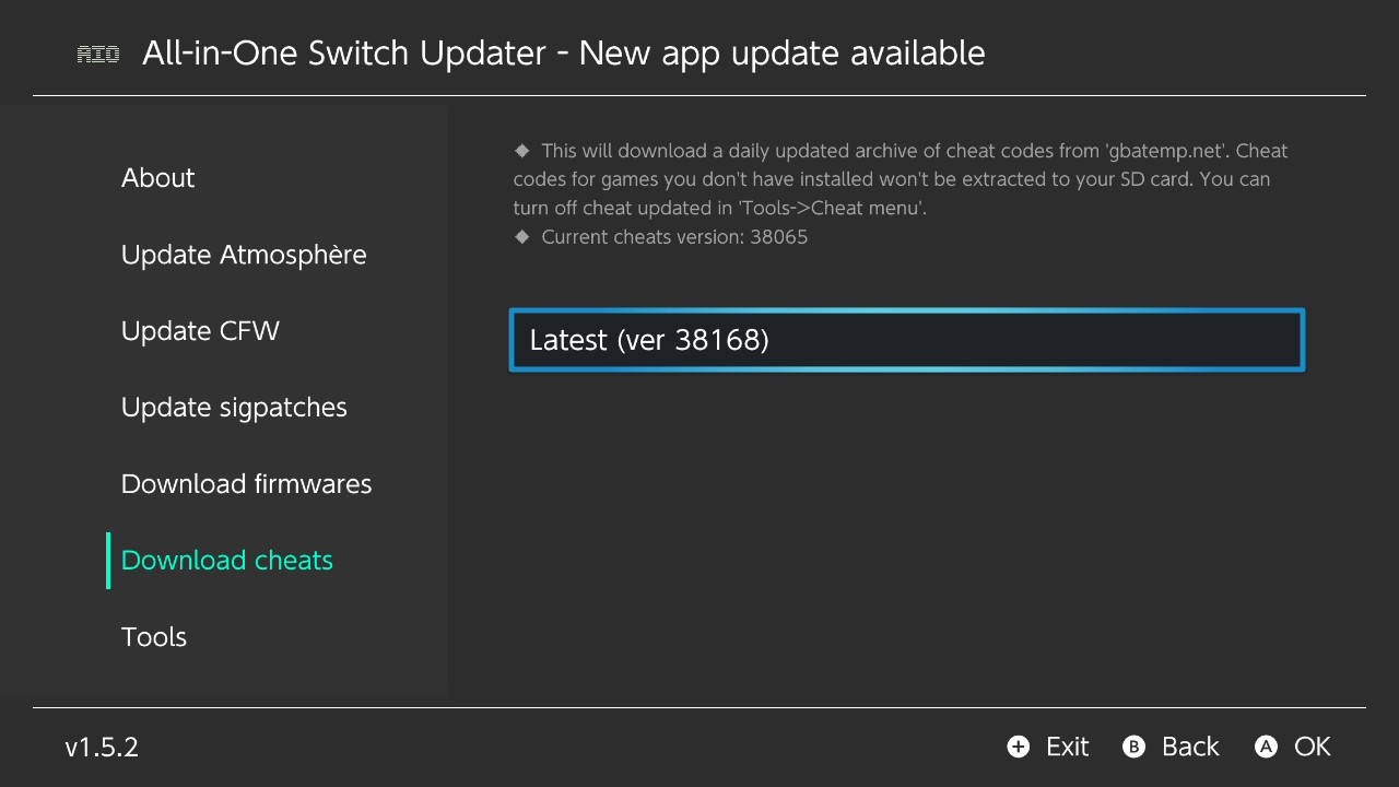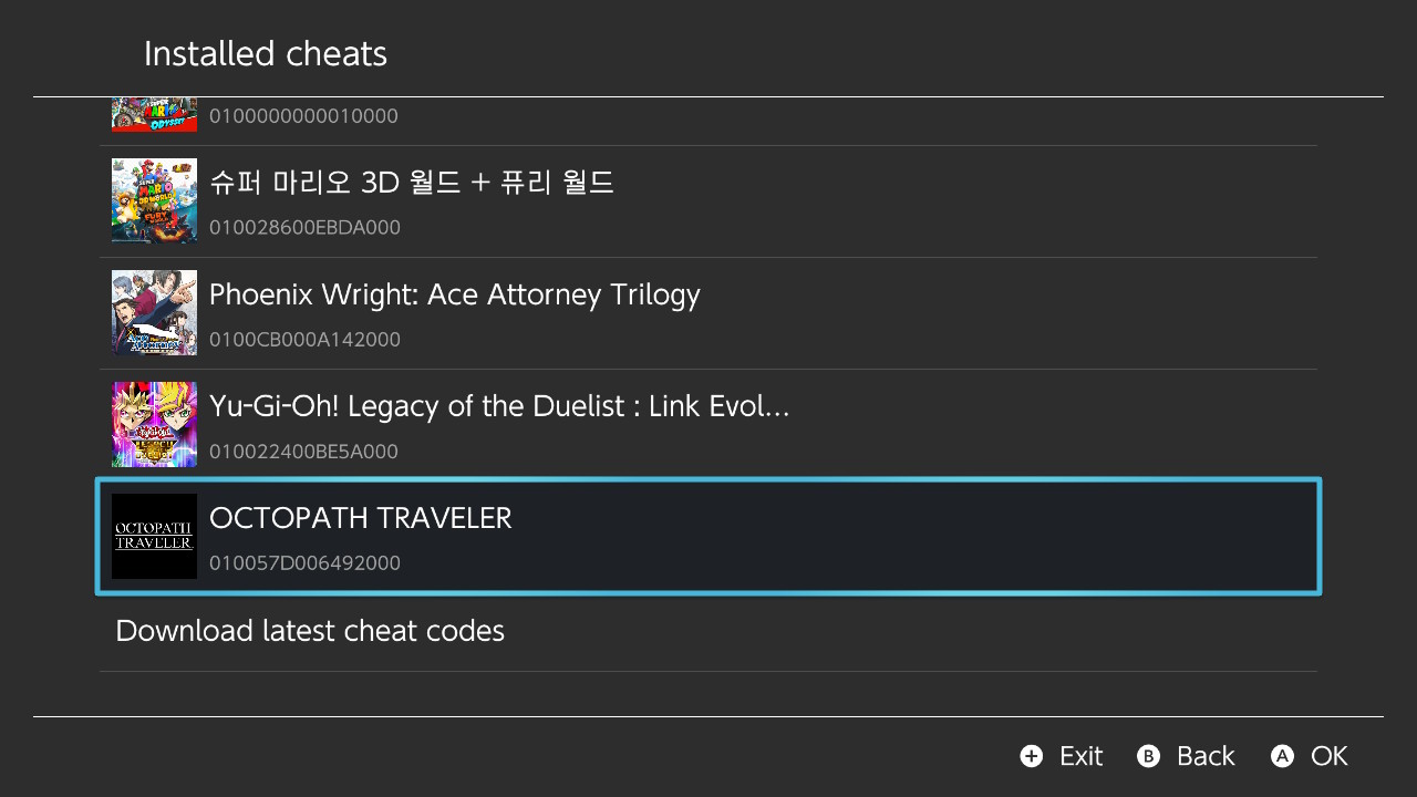 Current cheats version 이 현재 스위치에 저장된 치트파일의 버전입니다.