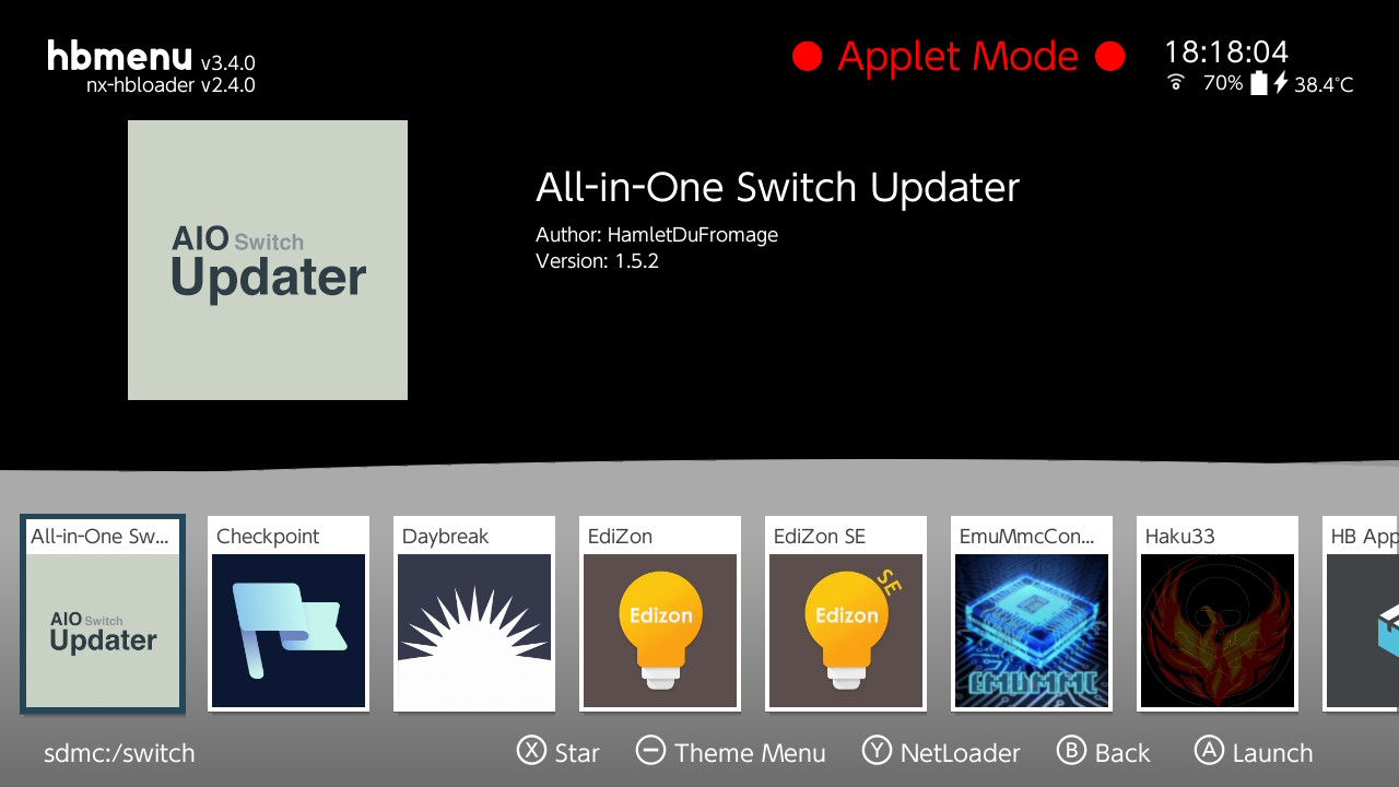홈브류에 진입해서 All-in-One Switch Updater 를 실행해주세요.