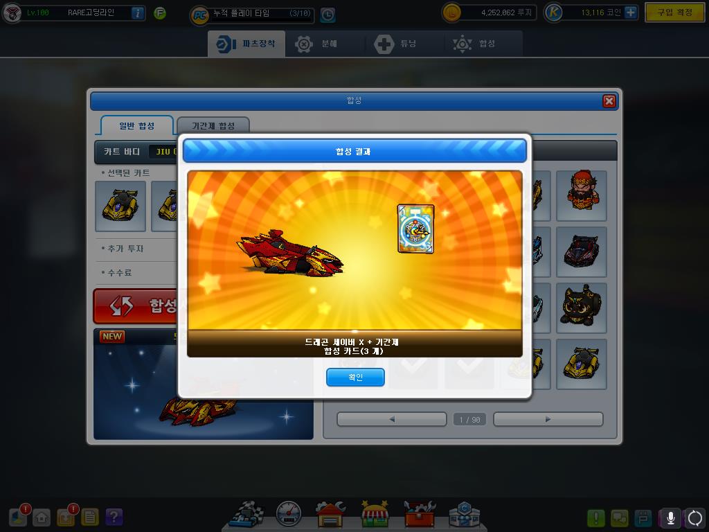 피시방 60시간 플레이타임, 빙고, 드래곤 세이버 카드, 합성이 있습니다.