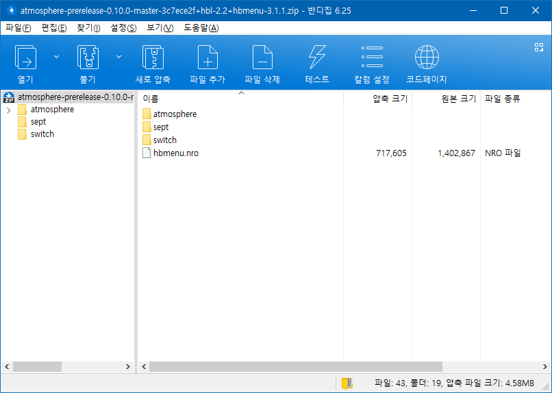 압축해제해서 나온 폴더와 파일을 스위치의 SD카드 최상단에 복사 붙여넣기 합니다.