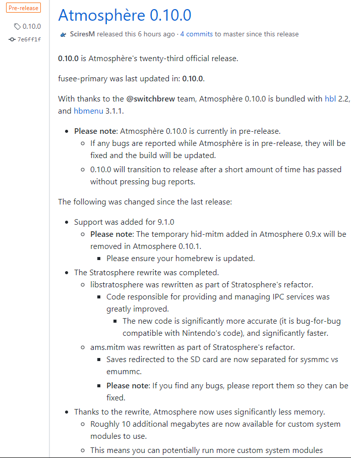 닌텐도 스위치 - 9.1 대응 atmosphere 0.10.0 릴리즈 / 다운로드